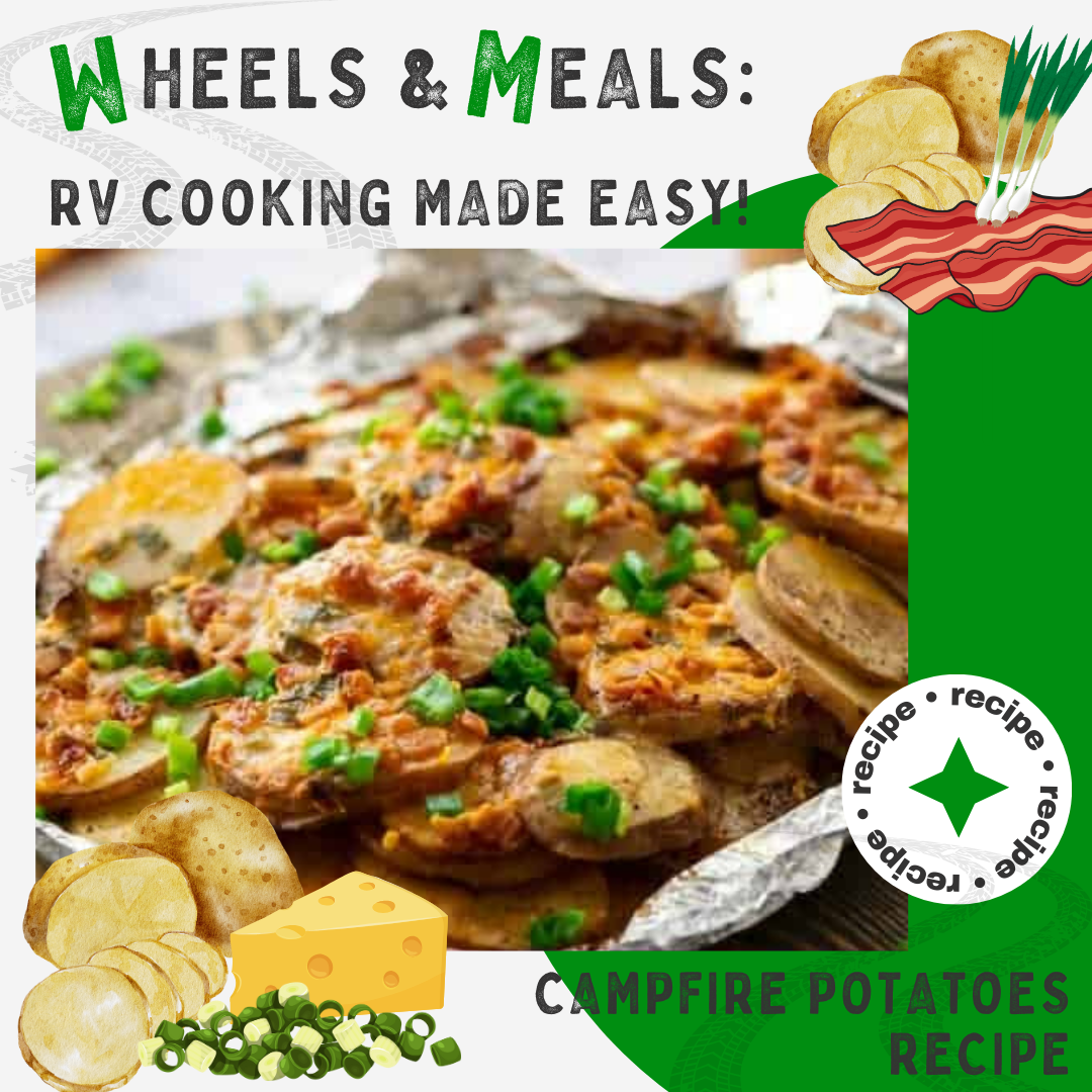 These campfire potatoes are exactly what the name implies: sliced red potatoes cooked over the fire, topped with your favorite seasonings, loads of cheese, and wrapped in foil. On your next RV adventure, grill them until tender with perfectly melted cheese, or try them in your oven at home for the same delicious flavor!