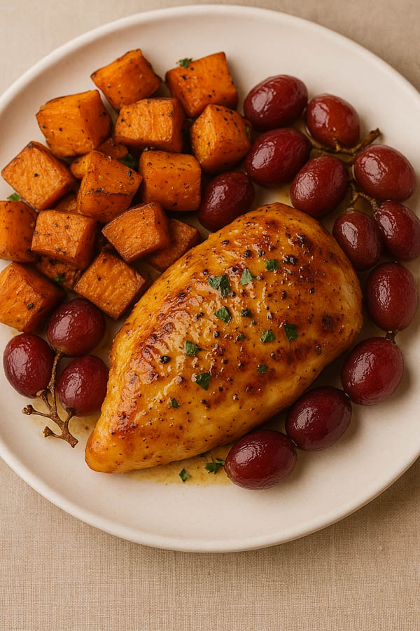 Why you’ll love it: It’s savory, sweet, juicy, and a little unexpected. Grapes in a savory dish? Trust me—it slaps.