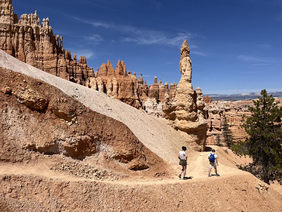 4. Take a Hike—With so many hikes in Bryce, you’ll find one to meet your skill set. You can tailor the flat, accessible 5.5-mile Rim Trail to meet your needs. Hikers can start or stop at different points along the trail if the 5.5 miles is too long. For those looking to add a challenge and length, the out-and-back Hat Shop Trail descends (then ascends) 1,380 feet through the balanced-rock hoodoos.