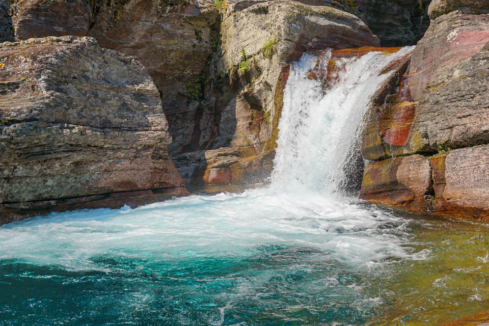 8. St. Mary Falls—The St. Mary Falls trailhead is located along the Going-to-the-Sun Road, about 10.5 miles west of the St. Mary entrance. This 2.5-mile round trip hike passes through an area that burned in 2015, continues into the lush, green pine forest and then leads to the incredible 35-foot tall, three-tiered, turquoise blue waterfall cascading through the rocks. If you have time, continue for less than another mile to the equally impressive 50-foot Virginia Falls.