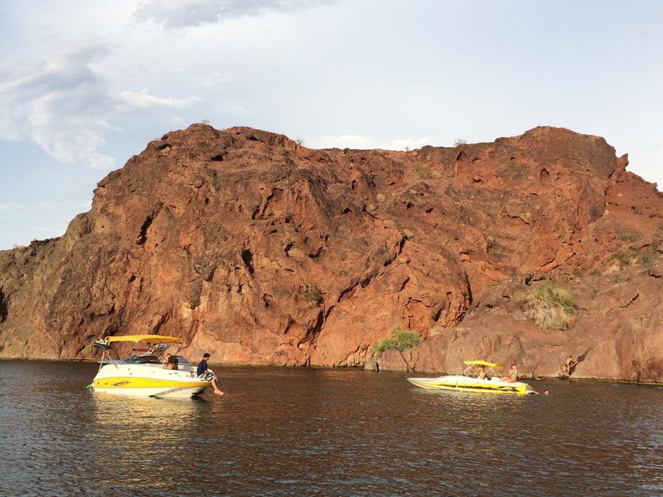 Lake Havasu with a couple of boats in frame