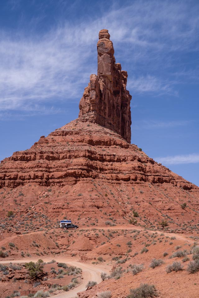 6. Camp Amongst the Ancients—Located on BLM land, the Valley of the Gods offers a jaw-dropping drive along a 17-mile dirt road. The road twists and turns through the sandy buttes and rock formations, and I recommend a high-clearance four-wheel drive vehicle. Plenty of dispersed boondock camping spots are throughout the loop, and a few sites near the entrances of 163 and 261 are accessible by larger RVs. Be sure to scout locations with your toad before venturing along the dirt road with your RV, as the road can sometimes become impassible.