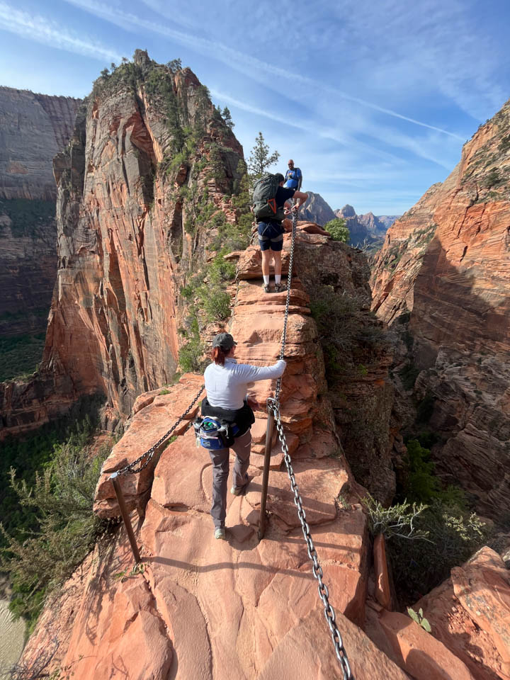 1. Hike Angel’s Landing – If you Google “Hardest Hikes in the World”, Angel’s landing is on that list. This hike is not for the faint of heart. But for those in good physical shape, not afraid of heights and want to check-off the most awe-inspiring, most epic hike of your life from your list, then this hike is for you. You must apply in advance for a permit, and not all who apply are granted a permit. If chosen, you will hike 2.5 miles up approximately 1,500 feet to the peak of Angel’s landing. For the last half mile of the hike up the “spine”, expect to crawl up rocks and cling to chains as the earth drops away from either side of you. For those just looking for a great workout with some epic views, non-permit holders can hike to Scout Lookout, which stops a half-mile short of the summit.